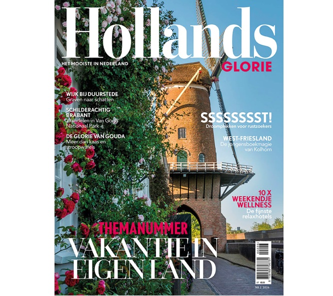 Het nieuwe nummer van Hollands Glorie heeft als thema vakantie in eigen land! Dus veel tips voor stil logeren in de natuur, de 10 fijnste wellnesshotels, een waterrijke wandeltocht en inspirerende dorpen en steden om te ontdekken. (Editie 2-2026)